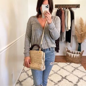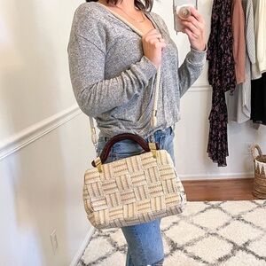 Italian Vintage Woven Convertible Lucite Handle Shoulder Bag