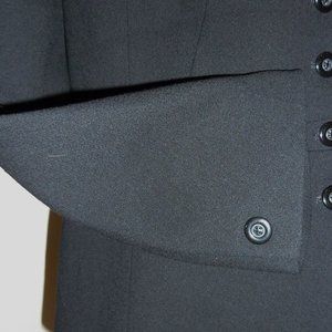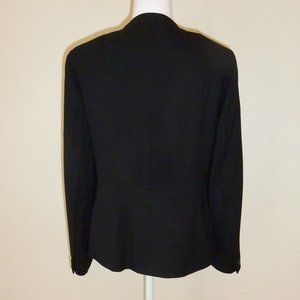 Talbots Jacket, Black, sz 16P. EUC. Round, V-Neck, 6 Buttons, Banding around Waist (highlighted in pic 2), Single Button at Cuff, Princess Seams Front and Back, Fully Lined. Italian Fabric, Wool Crepe.