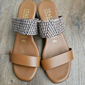 Italian double strap sandal heels faux leather in excellent condition, size 6.5
