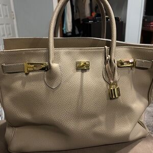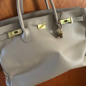 Bought in 2015 along the Amalfi Coast. Styled after Birkin. Never used. Grey pebbled leather.