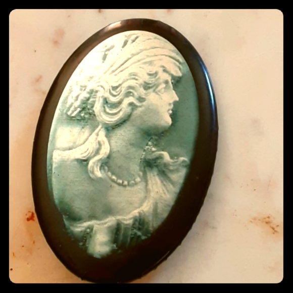Lovely smokey blue and silver antique cameo image. Reimagine ur black sweater with this fun, unique, classic pin. Bought in Rome in vintage Mondi district♡ good condition