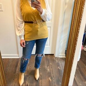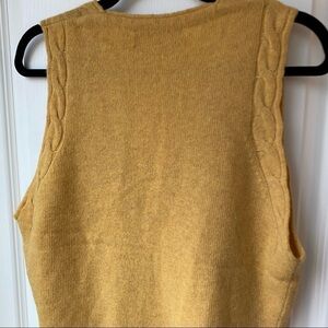 Italian pure wool yellow vest cableknit V-neck trim sleeveless sweater STEFANEL