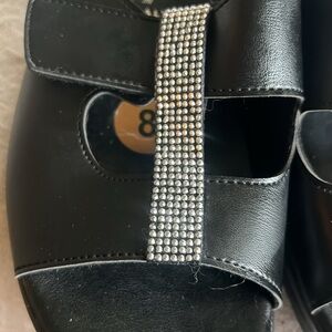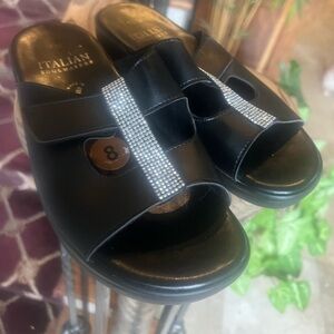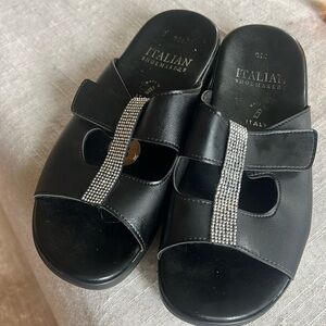 Italian shoemakers ladies slip on sandals eight medium very good condition made in Italy, Velcro, fasteners, shiny embezzlements made in Italy