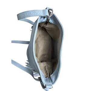 Italian-Made Light Blue Genuine Leather Shoulder Bag With Zip Closure & Tassel