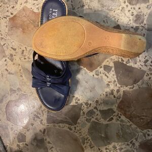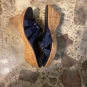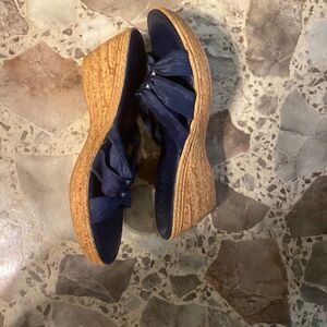 Italian Shoemaker Cork Wedge Navy Blue sandals, size 9 (leather). ***no box***