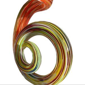 Beautiful Italian made Spiral Art Glass Abstract Sculpture with Lucite base (unsigned) in Excellent condition and beautiful vibrant colors.