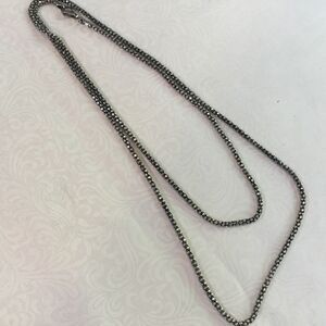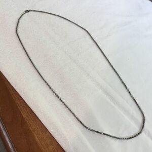 This gorgeous shiny sterling silver glitter necklace has a lobster claw clasp. It measures 29” in length. Please zoom in to see the diamond cutting that makes this necklace glitter.