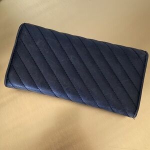 Italic leather quilted wallet with a zipper pocket for change, and plenty of card slots. Includes branded dust bag.