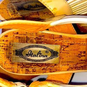 ✨ Italina Cream & Brown Embellished Wedge Sandals with Cork Platform✨GUC✨