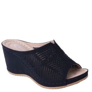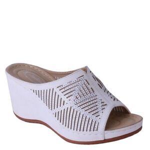 Italina Versatile White Embellished padded Slide In Mule Wedge Sandal