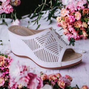 This fancy all white wedge can casually be worn w/ shorts or jeans or dressed up for a glam girly white night out