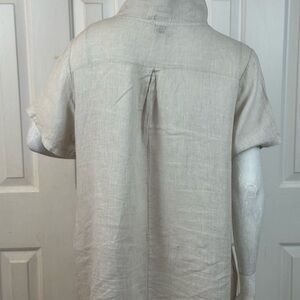 Italy 100% linen Elegant Cream Short Sleeve Dress