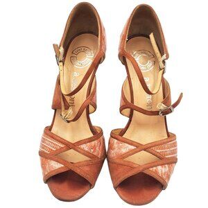 Italy A.Testoni Women's Size 6.5 Salmon pink lizard ostrich Open Toe Heels shoes