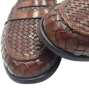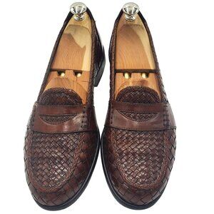 Italy Bragano Cole Haan Men's size 8.5 Brown Woven Leather Loafer Dress Shoes
