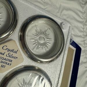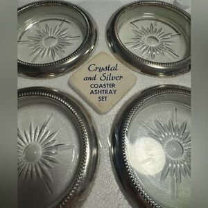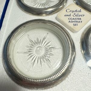 Italy Crystal & Silver Coaster Ashtray Set NOS Sealed Vintage Leonard Eales NIB