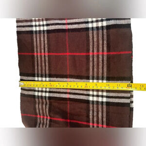 Italy Design Cashmere Blend Brown Plaid Tartan Fringe Scarf