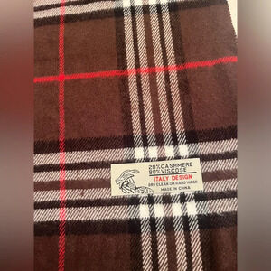 Italy Design Brown Plaid Cashmere Blend Fringe Scarf 12X54’