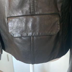 Authentic buttery soft Donna Karan Collection Made in Italy vintage blazer. Three front buttons. One fell off and has been saved and one is loose, but such a gorgeous jacket and remarkable soft leather. No tears. Two front pockets with flaps. The cuts and stitching are clearly couture quality.