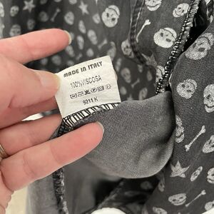 Italy Made Women XL Grey Skull Bones Oversized Button-Up Metallic Trim Skelton
