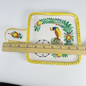 Italy Pottery Majolica Snack Tray Cup Holder Galletto Rooster Terracotta VTG