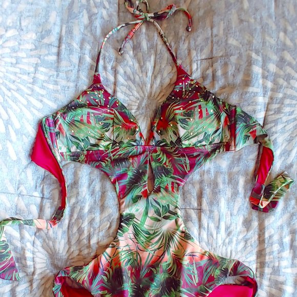 Italy Sexy Bikini Red & Green with Leaf Pattern