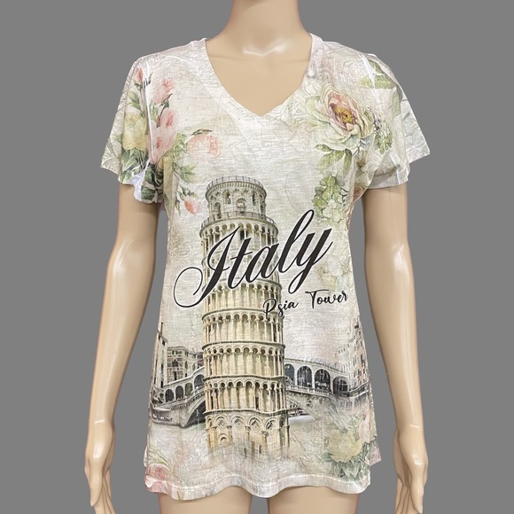 Italy Psia Tower Photographic V-Neck Tee Size Large