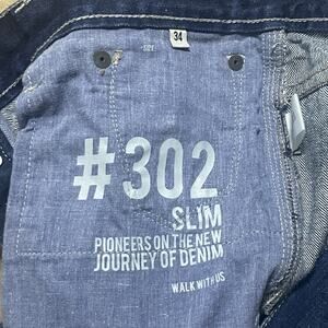 !Item Jeans Mens 34x33 Blue Mid Wash Selvedge Denim Button Fly Slim #302 USA