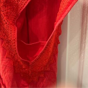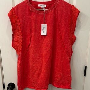 Add a pop of color to your wardrobe with the Red Lace Sleeve Muscle Tee. This stylish top features intricate lace detailing on the sleeves, perfect for a chic and comfortable look.