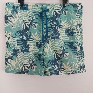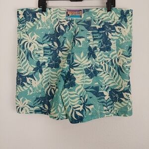 It's 5 O'Clock Somewhere Mens Size XL Tie Front Swim Board Shorts Green Mesh EUC.