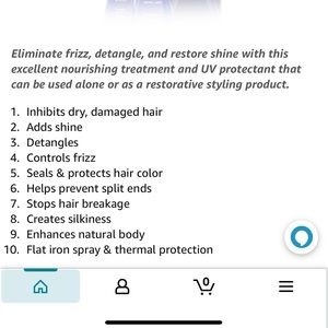 This is truly a miracle for you hair. Helps dryness frizzy damaged or curly hair look smooth and healthy