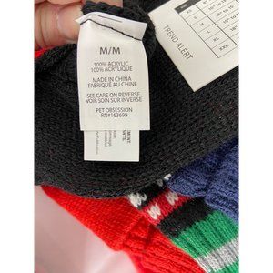 This cozy, festive "It's A Bark Life" Dog Christmas Sweater will keep your pup warm and stylish. The black and red cable knit design features mistletoe, candy canes, and the word 'Joy'. Size M. New with tags.