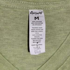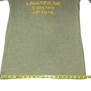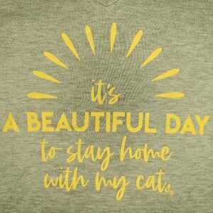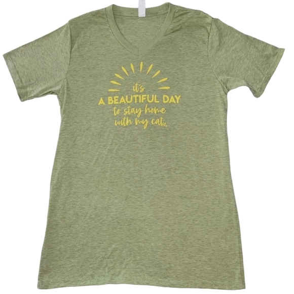 "It's A Beautiful Day To Stay Home With My Cat" Tee Green & Yellow Size Medium