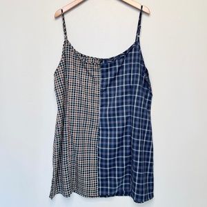 It’s CATO | Split Patchwork Two Toned Plaid Mini Slip Cami Dress