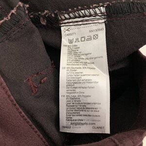 -Maroon/burgundy skinny/slim leg pants with back pockets and elastic in the back of the waistband