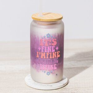 It’s Fine I’m Fine Everything Is Fine, Groovy Tumbler, Retro Funny Glass Cup, 70s Vibes Anxiety Gift, 16oz Frosted Iced Coffee Mug,Tired Mom