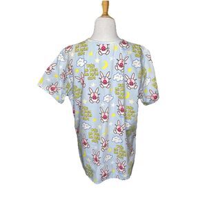 It’s Happy Bunny Jim Benton Scrub Top Women’s Size M Light Blue Pink White