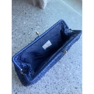 It's In The Bag Ritter Clutch Navy Woven Purse Raffia Kiss Lock Evening Bag