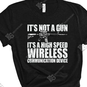 It's Not A Gun. It's A Wireless Communication Device Tee. Available in most sizes crew neck in black, long sleeve (additional $7). If interested in a different color, specify when ordering. Get yours today!!