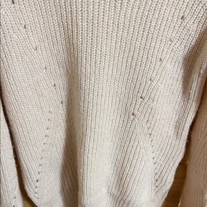 Elegant cream V-neck sweater with stylish crisscross back. Ideal for layering and adding sophistication.