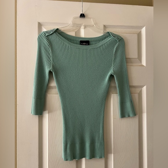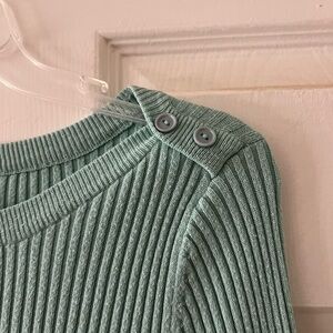 Cute mint ribbed sweater with shoulder buttons. Ideal for a cozy, stylish outfit.