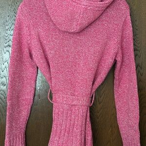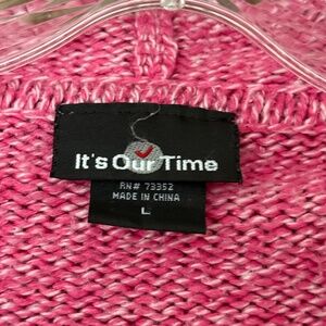 This pretty and cozy It's our time Pink & White Heathered Belted Cardigan Sweater is a Juniors Size Large.