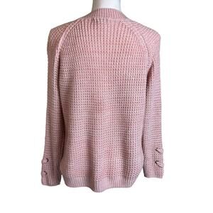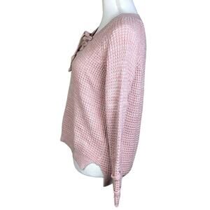It's Our Time Sweater Women Medium Pink Waffle Knit Brioche Stitch V Neck Ties