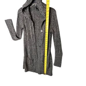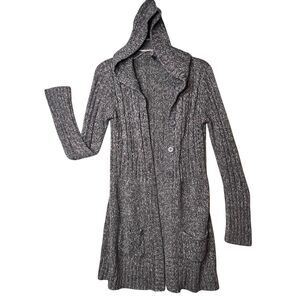 It's Our Time Sweater Womens Medium Gray Hooded Cable Knit Cardigan Button Front