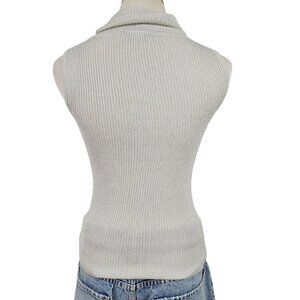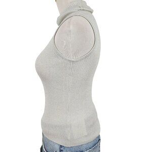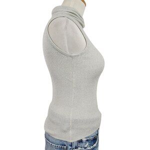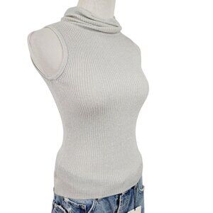 It's Our Time Sweater Women's Small Sleeveless Turtleneck Ribbed Sparkle Silver
