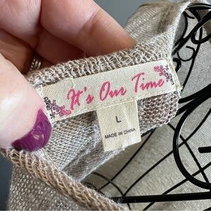 It's Our Time Tan and Cream Oversized Long Sleeve Blouse w back button closure
