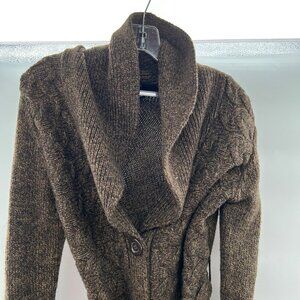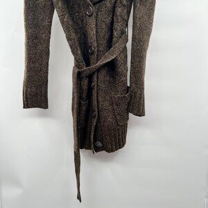 It's Our Time Women's Knit Button Up Cardigan Brown Size Medium Belted