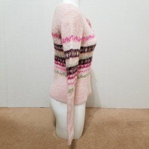 Fuzzy knit pullover fair isle sweater. Keyhole tie neck. Stretch. Originally purchased in the early 2000's. Y2K! VINTAGE.
