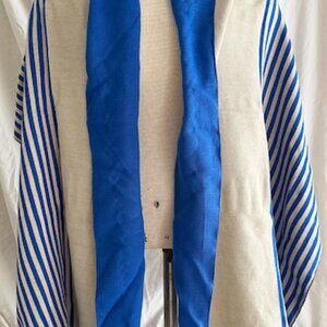 Beautiful royal blue acrylic striped scarf, 80" long x 23" wide.