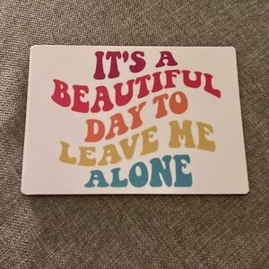 New. “It’s a beautiful day to leave me alone” magnet. 5.5x4”. Strong enough to hold notes and photos. *Reasonable* offers only please.