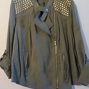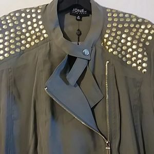 It's a really nice,Studded waist jacket,linen blend roll sleeve and elastic on the waist.